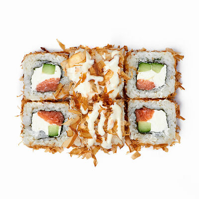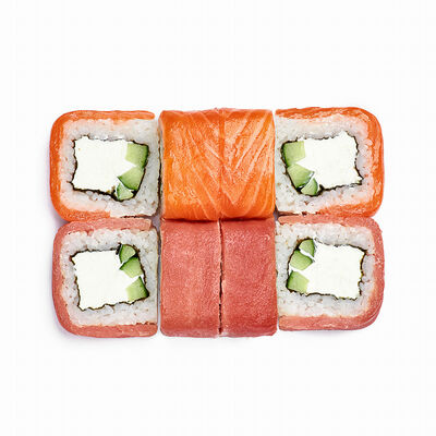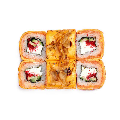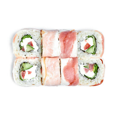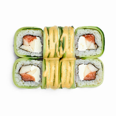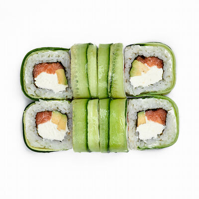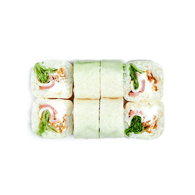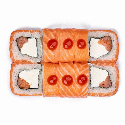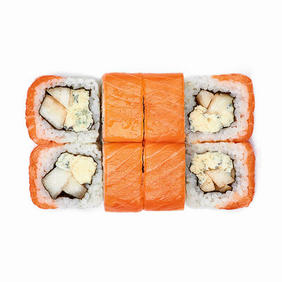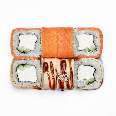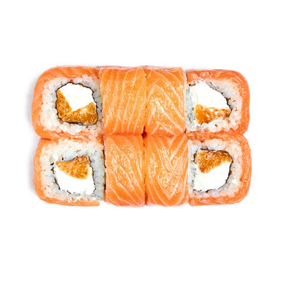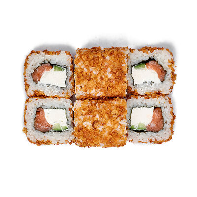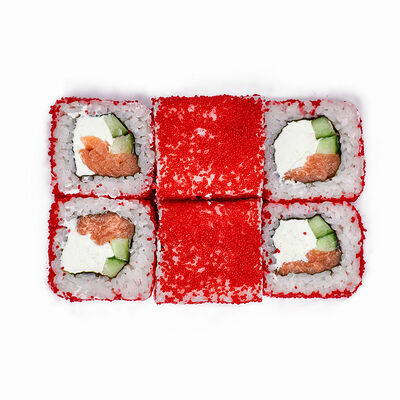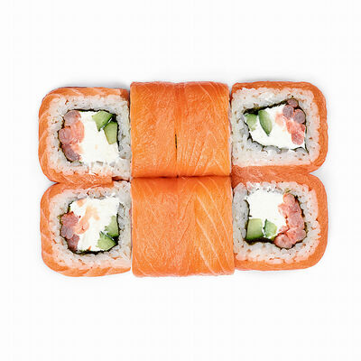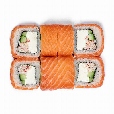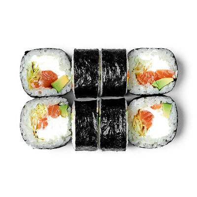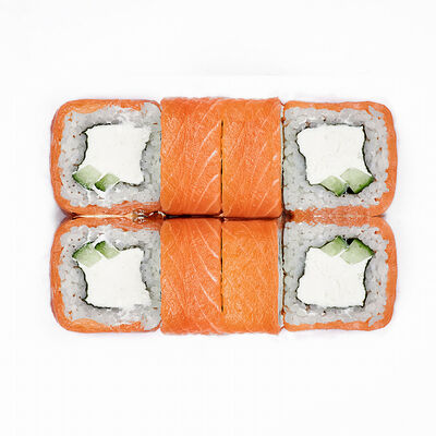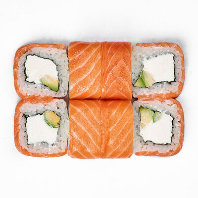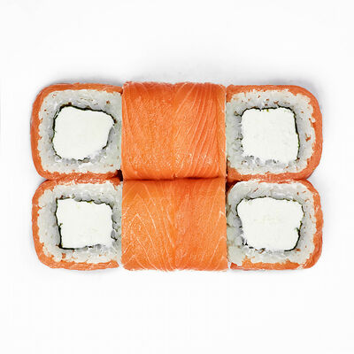Рис, нори, сыр сremette, авокадо, лосось, огурец