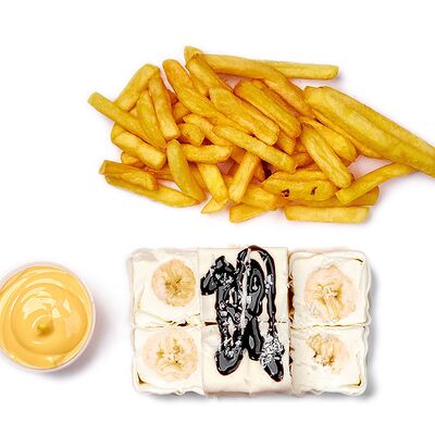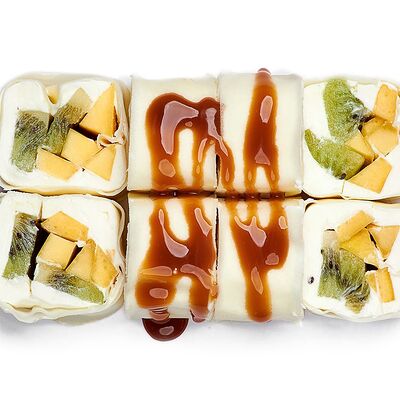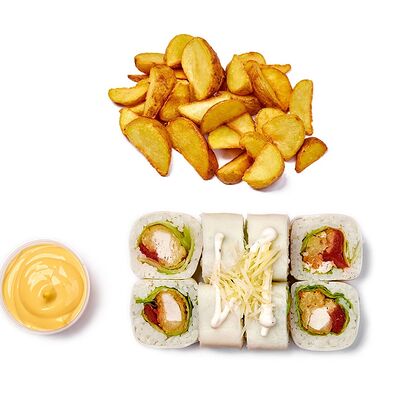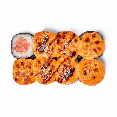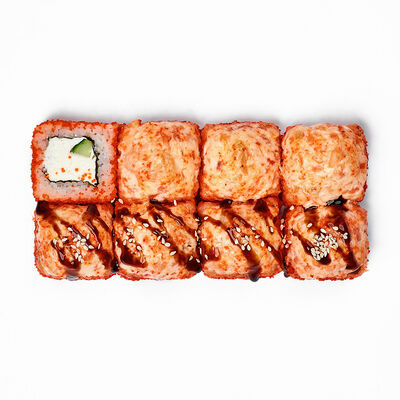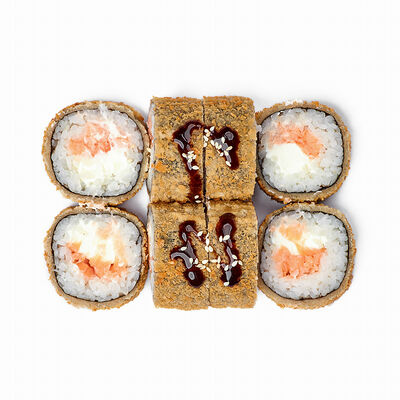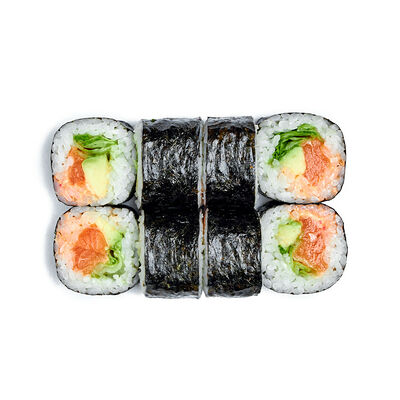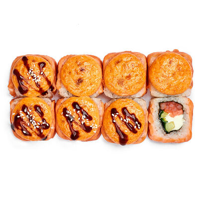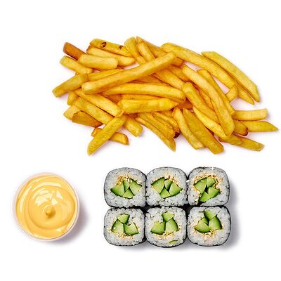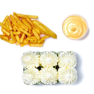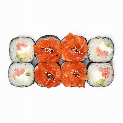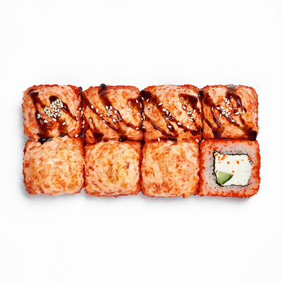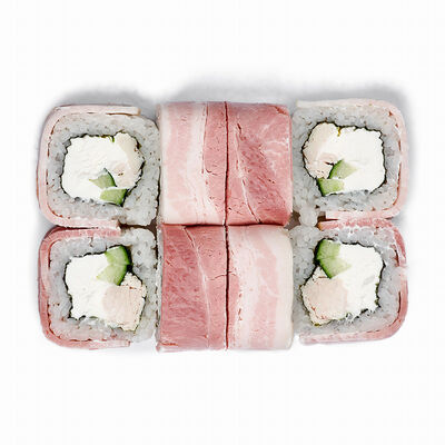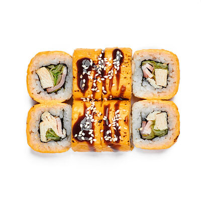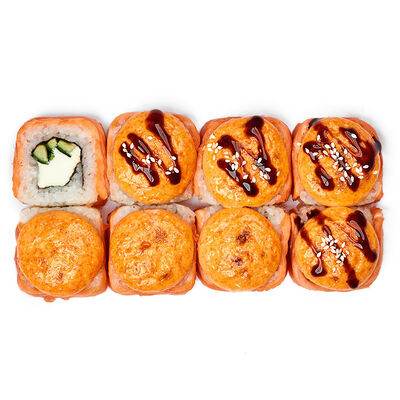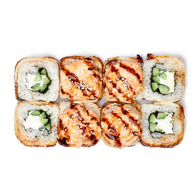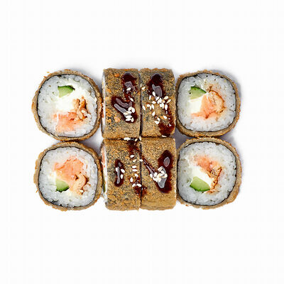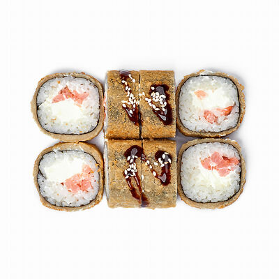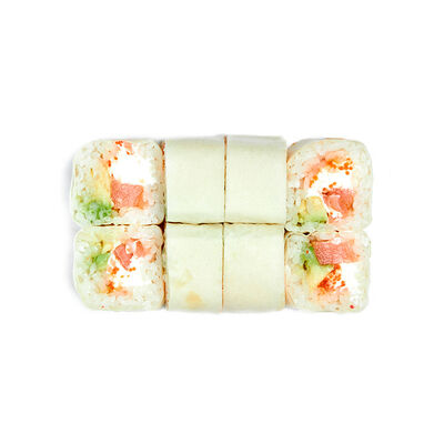 Рис, нори, сыр сremette, авокадо, лосось, огурец