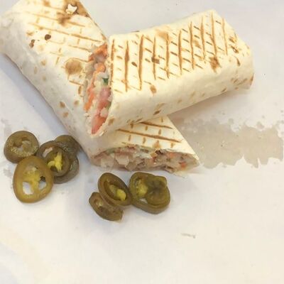Лаваш тонкий, куриное филе, соус, помидор, огурец, лук, капуста, морковь по-корейски