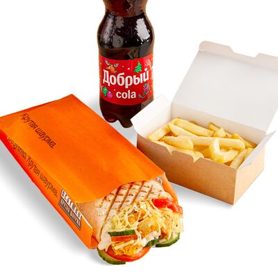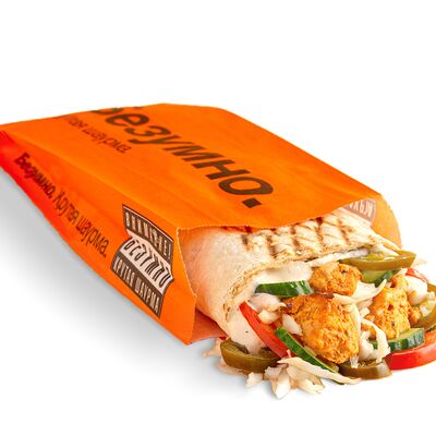 Цыпленок, ароматный лаваш, фирменный соус, сливочный сыр, нежный плавленый сыр, ананас