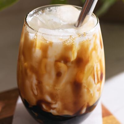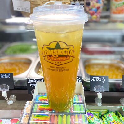 Композиция из зелёного чая с жасмином и сока манго с добавлением сладости манго. Выбери тапиоку или сочные джус-боллы (шарики-икринки с соком) в напитке. Напиток утолит жажду и взбодрит ярким непередаваемым вкусом