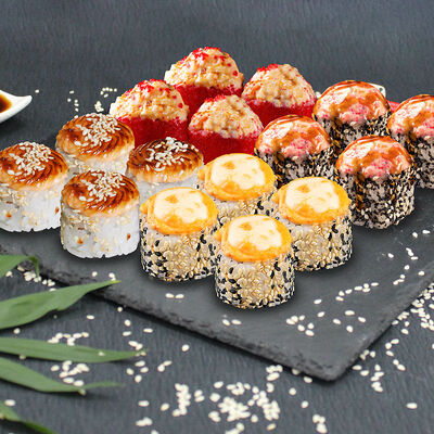 Калифорния темпура, гриль чикен маки, капа маки, гриль кани маки, бонито, гриль чикен