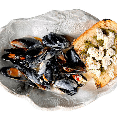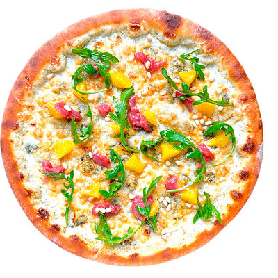 Тесто дрожжевое, сыры сулугуни, горгонзола, чанах, моцарелла, груша, орех