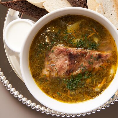 Зелёные щи с копчёностями доставка