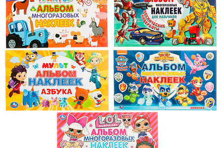 Альбом многоразовых наклеек из серии «Мультфильмы» УМКА откроет для ребенка красочный и бесконечно интересный мир наклеек с любимыми персонажами. Пусть дети украшают обложки тетрадей, дневников и блокнотов героями «Щенячего патруля», «Синего трактора» и других культовых мультсериалов. Многоразовые наклейки из альбома хорошо держатся на любых поверхностях и легко снимаются, не оставляя следов клея. Их можно смело использовать несколько раз. Серия представлена пятью дизайнами с персонажами мультфильмов.