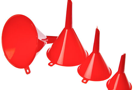 Комплект воронок имеет различные области применения. Устройство устойчиво к маслу, бензину и кислотам с удобной рукояткой.