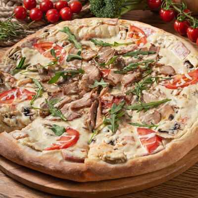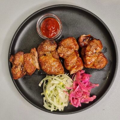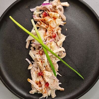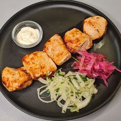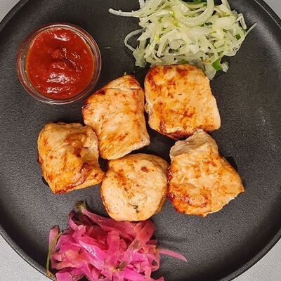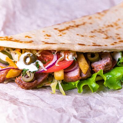 Свежий салат, помидоры, фирменный соус и нежное мясо курицы, завернутые в хлеб из тандыра
