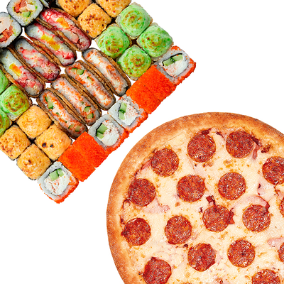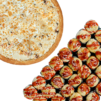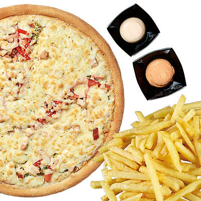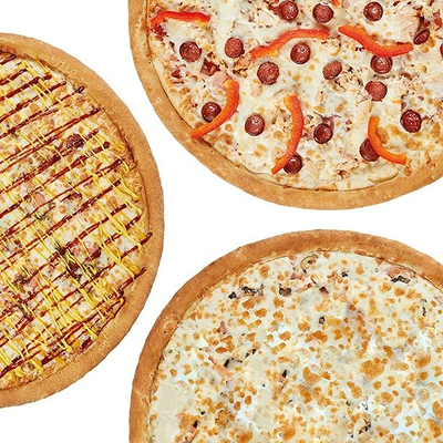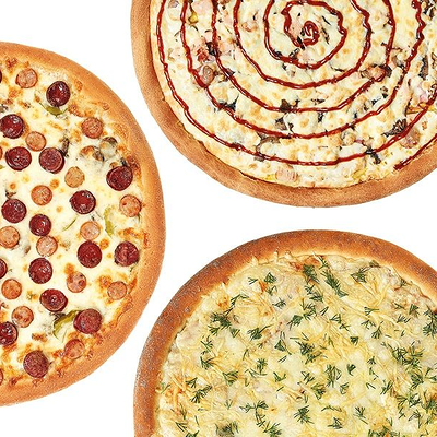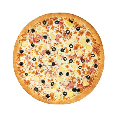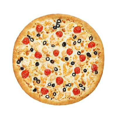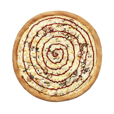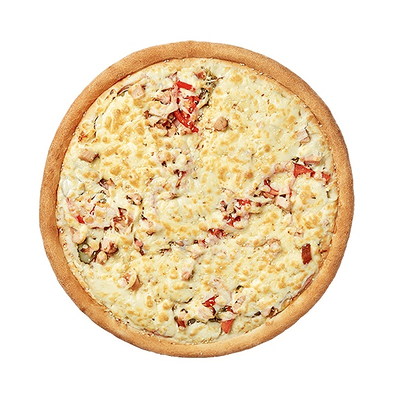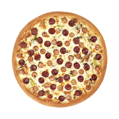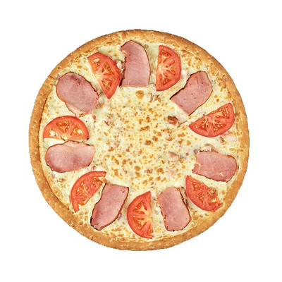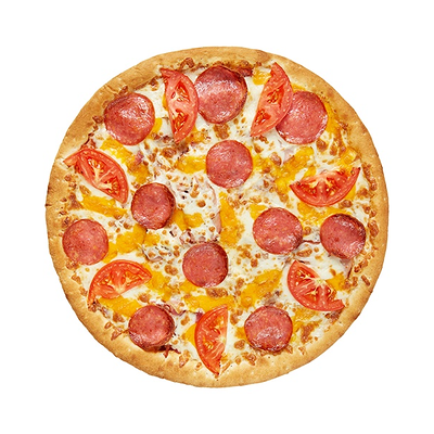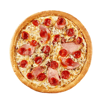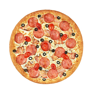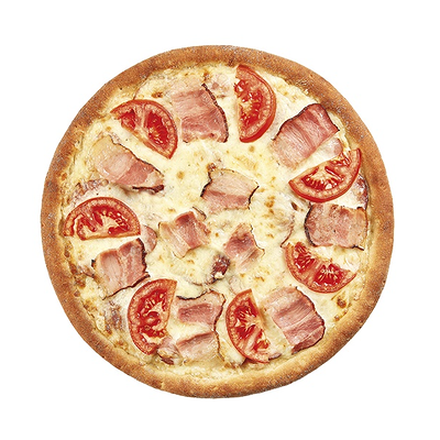 Тесто, соус фирменный, бекон, карбонад, белый соус, сыр моцарелла, сыр чеддер, салями, помидор (30 см)