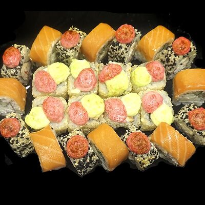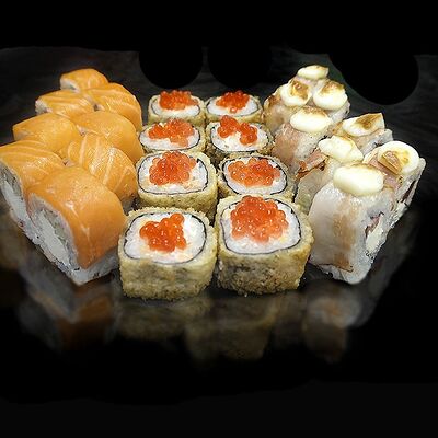 Рис, нори, сыр сливочный, лосось, икра лососевая