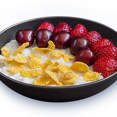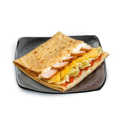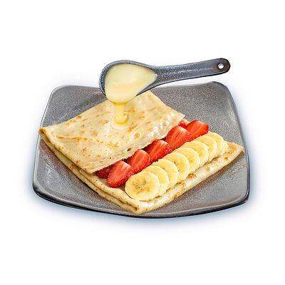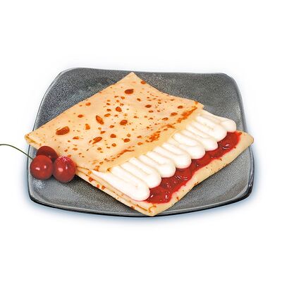 Блин (молоко, сахар, соль, куриное яйцо, сода, подсолнечное масло), ягоды черешни