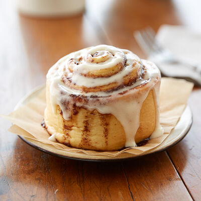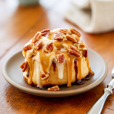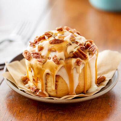 Пшеничная смесь, маргарин, вода, дрожжи, корица, коричневый сахар, сыр сливочный, сахарная пудра, экстракт ванили, экстракт лимона, топпинг карамель