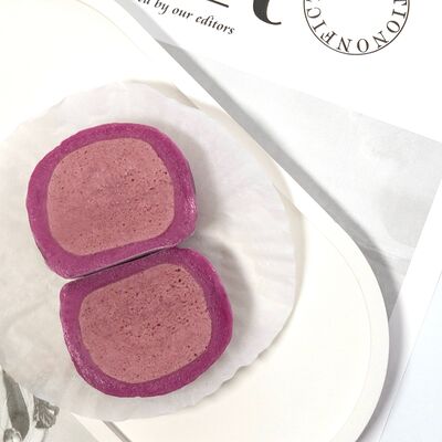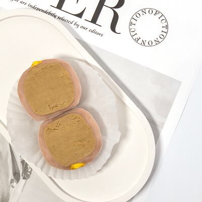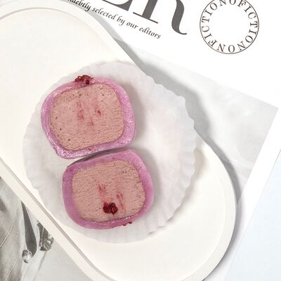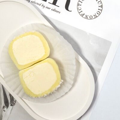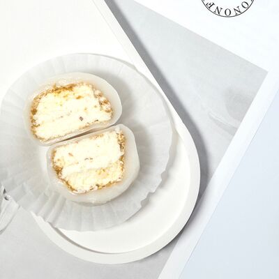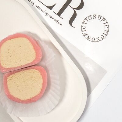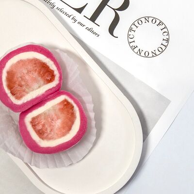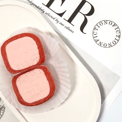 Крем-чиз, сахар, свежая клубника, клейкая рисовая мука, вода, пищевой краситель, кукурузный крахмал, сливочное масло