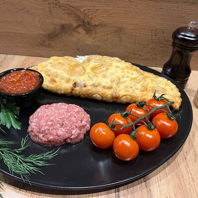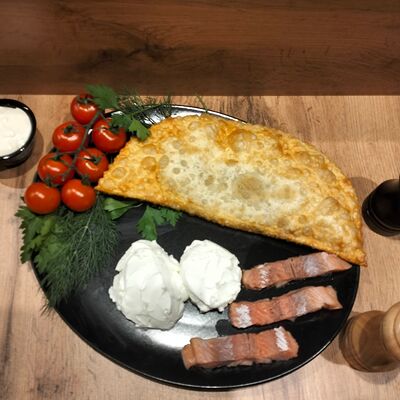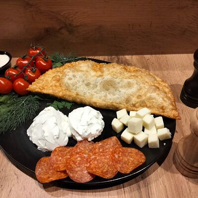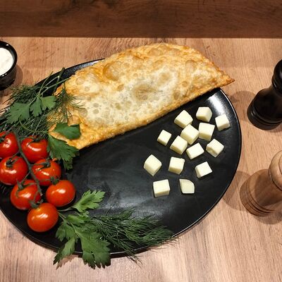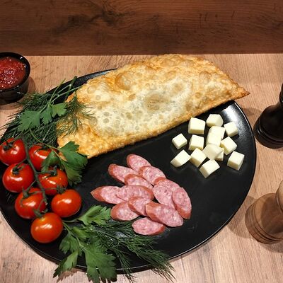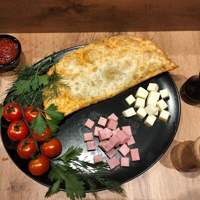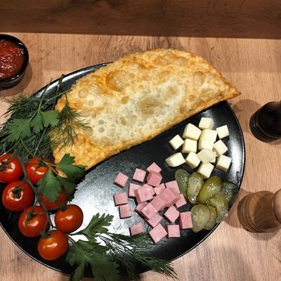 Чебурек с сыром, ветчиной, маринованными огурчиками доставка