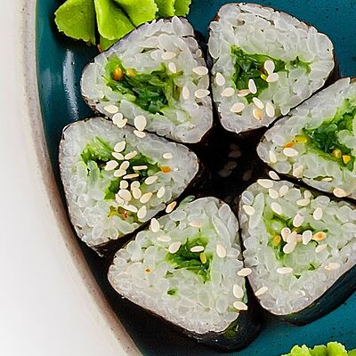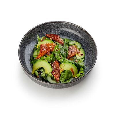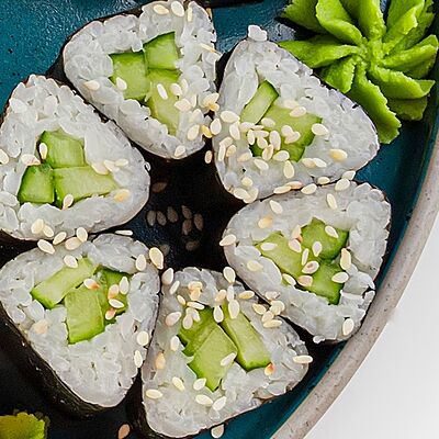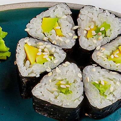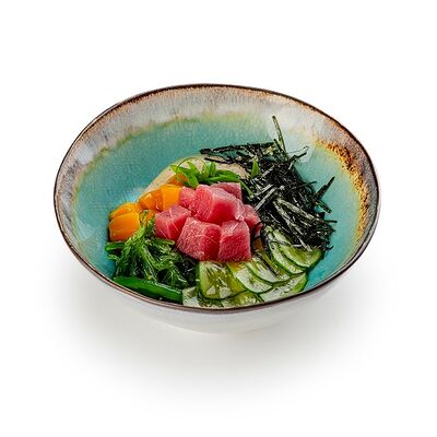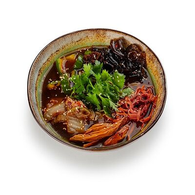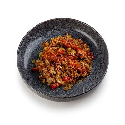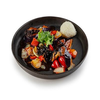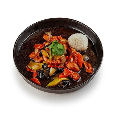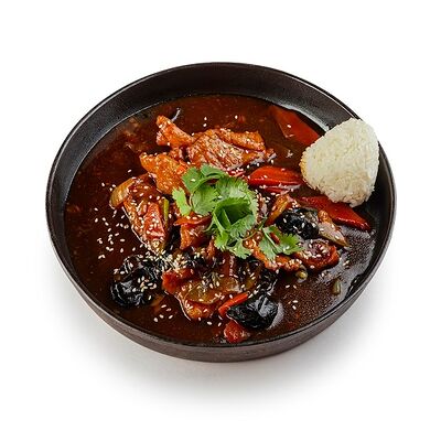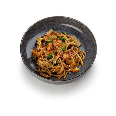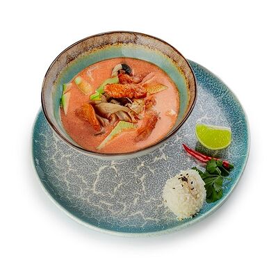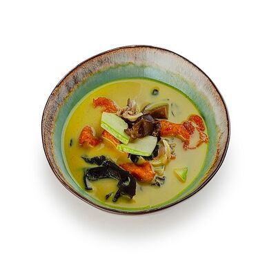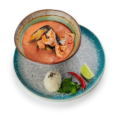 Мидии, кальмары, креветки, семга, грибы, молоко кокосовое, кинза, лук зеленый, лемонграсс, базилик, паста том-ям, имбирь, соус рыбный тайский, соль, специи, рыбный бульон, рис, лайм, кунжут