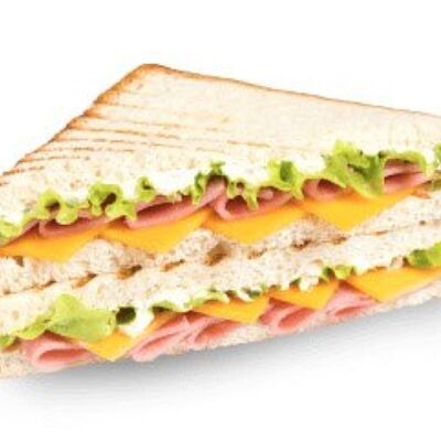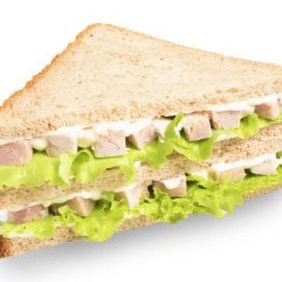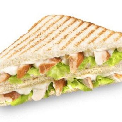 Хлеб тостовый, обжаренный на гриле, копченая куриная грудка, майонез, салат пекинский