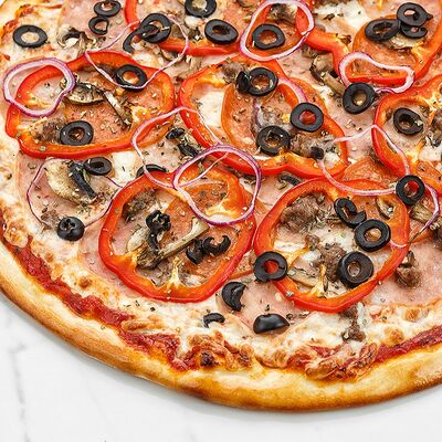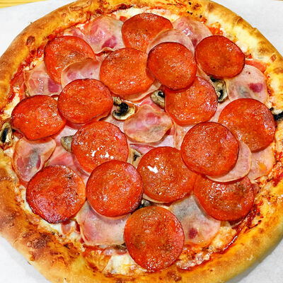 Ветчина, шампиньоны, помидоры, сыр, томатный соус (32 см)