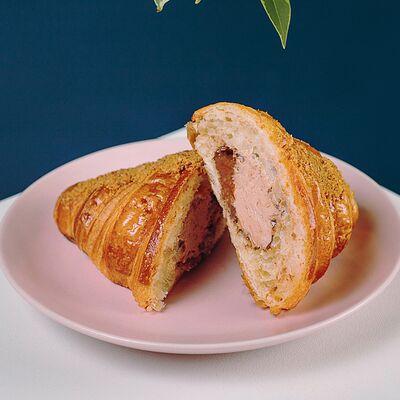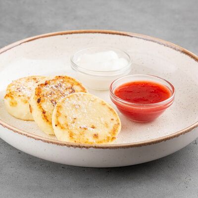 Пшеничная лепешка с ломтиком нежной ветчины и слайсом сыра. Подаётся со сметаной