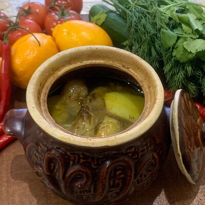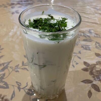 Айран с зеленью и кусочками огурца