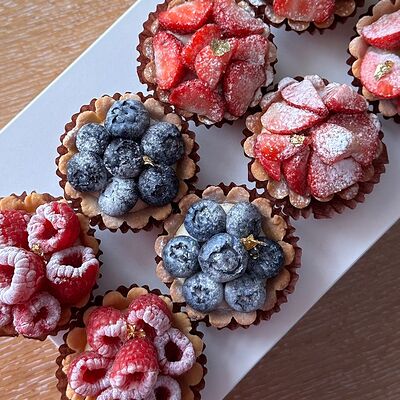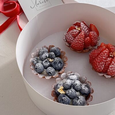 Песочное тесто, ванильный заварной крем, клубника, голубика (4 шт.)