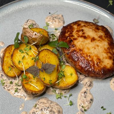 Медальоны из телятины с молодым картофелем и кукурузой доставка