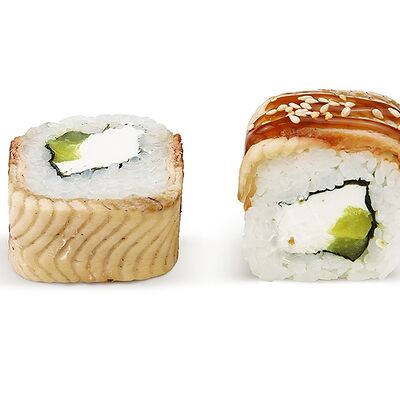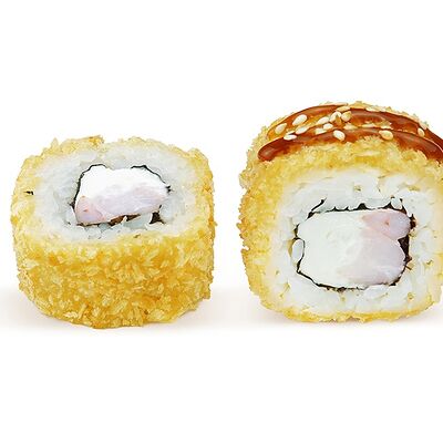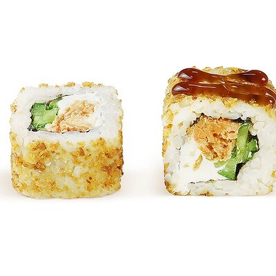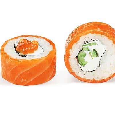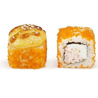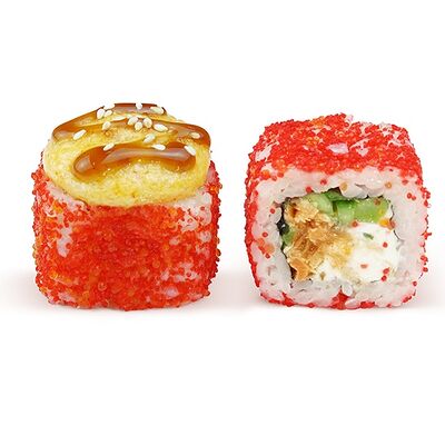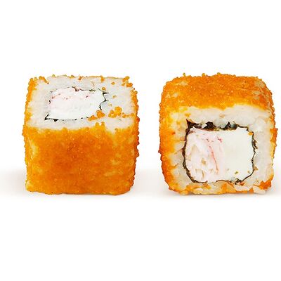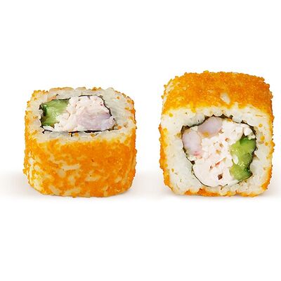 Креветки тигровые, снежный краб, огурцы, масаго оранжевая (1 шт.)