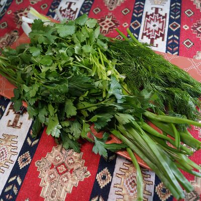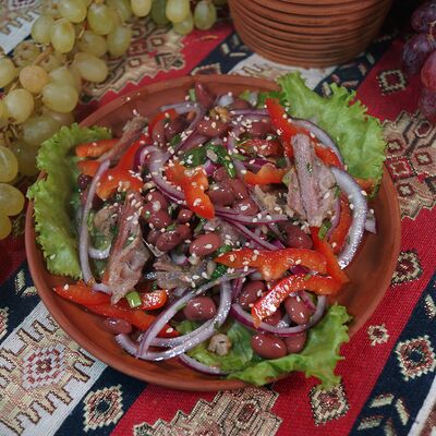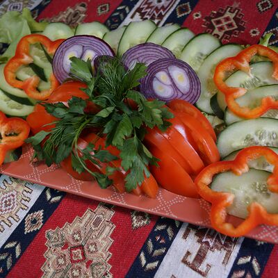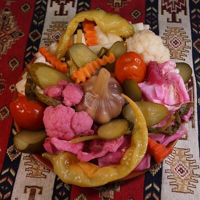 Капуста квашеная, нут, чечевица, ачар, булгур, лук обжаренный, фасоль красная, зелень, специи