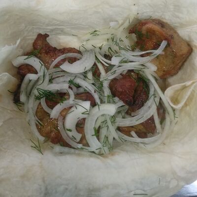 Свинина, овощи, соус чесночный, соус томатный, лаваш армянский