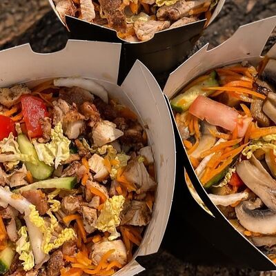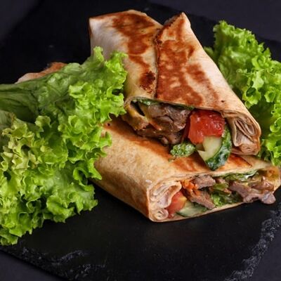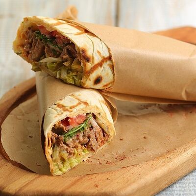 Подача в коробочке, хрустящий запеченный лаваш с грибочками, 100% сочное мясо на выбор (Люля-Кебаб курочка, Люля-кебаб теленок, ягненок, свинка, веги микс грибной), горячий овощной микс (томаты, огурчики, капустка, маринованный лучок), фирменный густой чесночный соус с тонкими нотками оливкового масла, цедры лимона и восточных специй