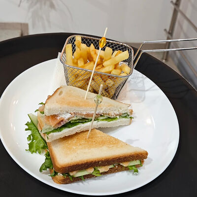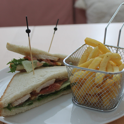 Клаб сэндвич с овощами и сыром с картофелем фри доставка