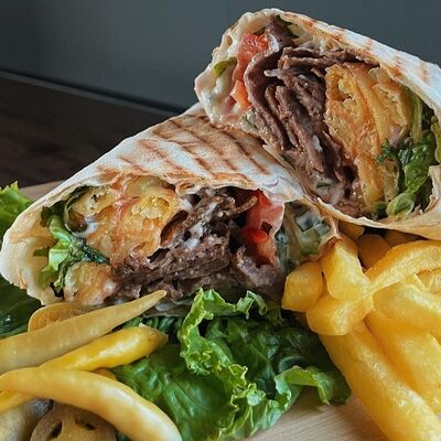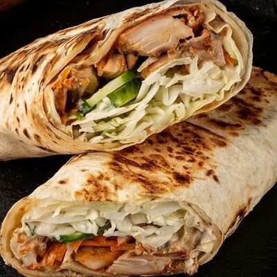 100% сочное BBQ мясо на выбор в пшеничном твистере (курочка, мраморная говядина, поросенок, веги микс), с маринованными огурчиками, свежий итальянский микс (томаты, огурчики, капустка, маринованный лучок), итальянский густой чесночный соус с тонкими нотками цедры лимона, специальных специй