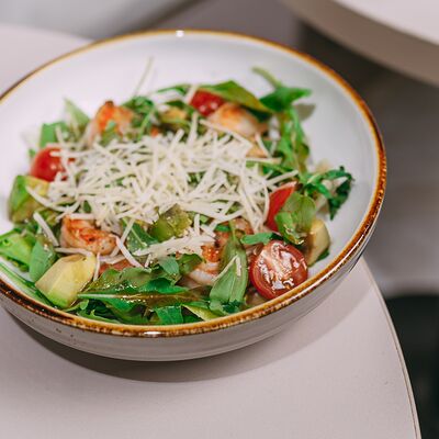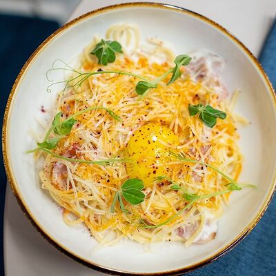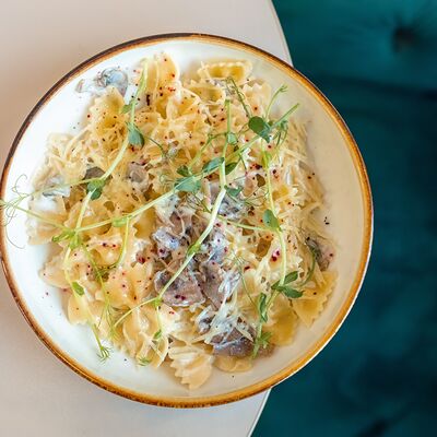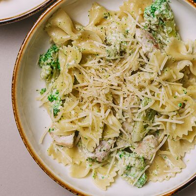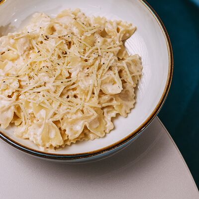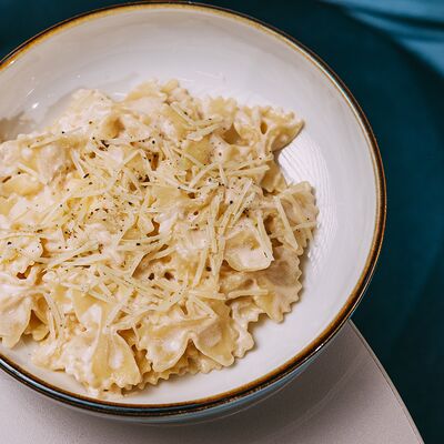 Паста, сливочный соус, курочка, сыр