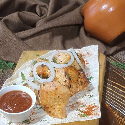 Крылышки куриные, кетчуп, соус, соль, приправы