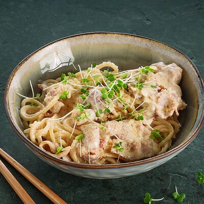 Шампиньоны, сливки 22%, картофель, сухари, лук репчатый, соль, перец