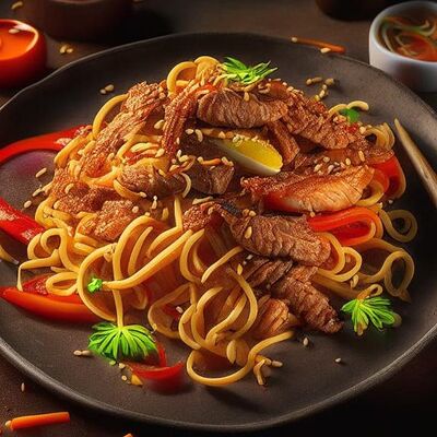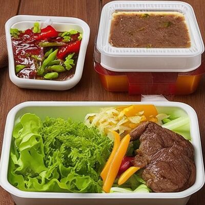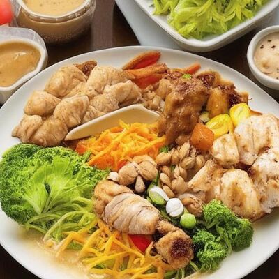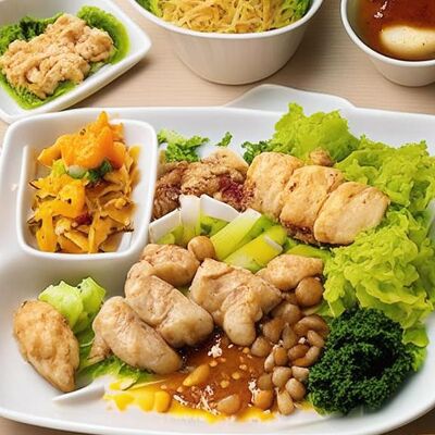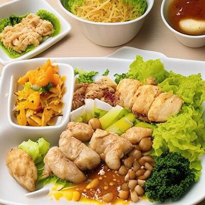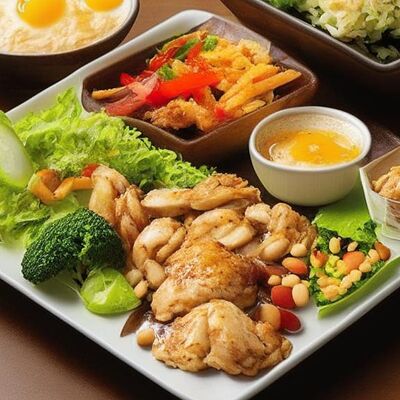 Два Комплексных обеда, в основе которого двойная порция рубленного бифштекса из сочного цыпленка табака, гарнира и салатика на выбор, десерта, закуски, напитка и очень вкусных добавок. Гарнир высшего сорта, приготовленный на основе фирменного имбирного соуса методом пароконвекции, 100% натуральные и качественные ингредиенты, всегда свежие, сочные, витаминные салатики, полноценный обед заряжающей энергией на весь день