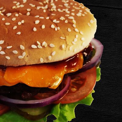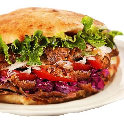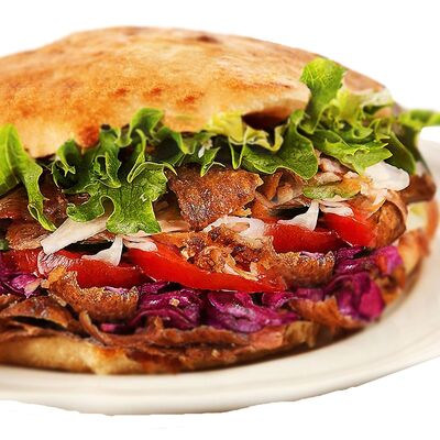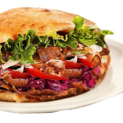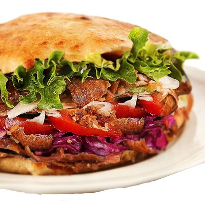 Большая натуральная ароматная булочка, сочное мясо на выбор, свежий овощной микс (томаты, огурчики), маринованный лучок, мёд, лимон, специи (кориандр, паприка, укроп, петрушка, базилик, мята, чабер, орегано и смесь перцев с копчёным чипотле), густой фирменный соус (варенец, чеснок, картофель, оливковое масло, специи), острый мексиканский микс (халапеньо, перец, чеснок, маринованный лучок), острый соус