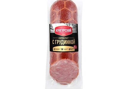 Колбаса Сервелат 300гр с Грудинкой в/к срез охл Кунгурский МК в/у доставка