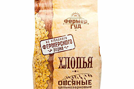 Хлопья Фермер Гуд 450гр Овсяные Цельнозерновые пакет доставка
