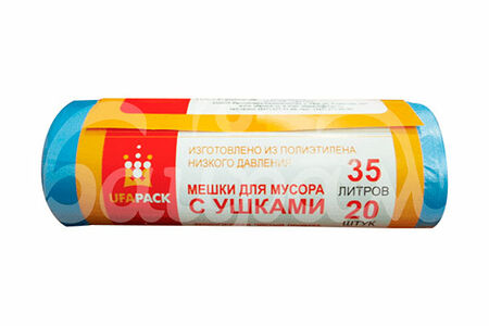 Пакеты для мусора УфаПак 35л 20шт с Ушками Голубые доставка
