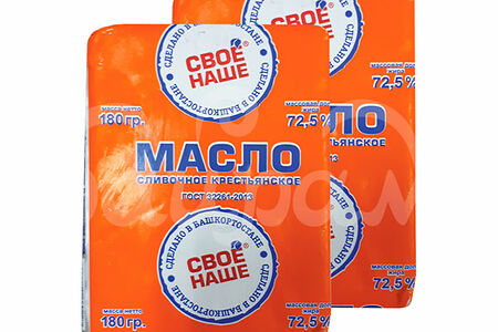 Масло Свое Наше 72.5% 180гр Крестьянское Сливочное фольга доставка