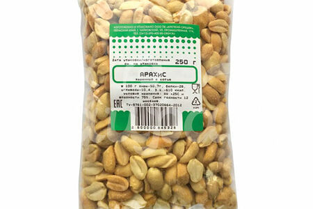 Арахис ядро 250гр Жареный с солью Башбакалея пакет доставка