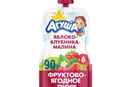 Детское питание Пюре Агуша 90гр Яблоко Клубника Малина с 6мес дой-п доставка