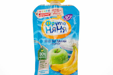 Детское питание Пюре Фруто Няня 90гр Яблоко Банан Творог дой-пак доставка