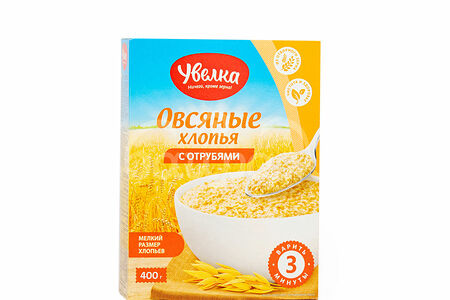 Хлопья Увелка 400гр Овсяные с Отрубями карт/уп доставка