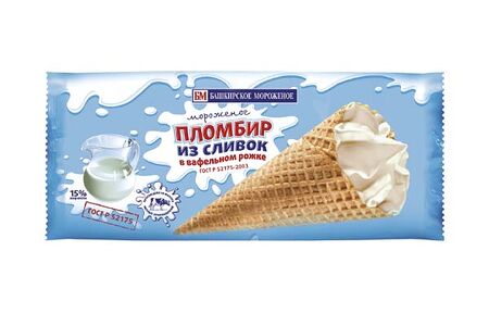 Мороженое Пломбир из Сливок 15% 70гр рожок БМ доставка