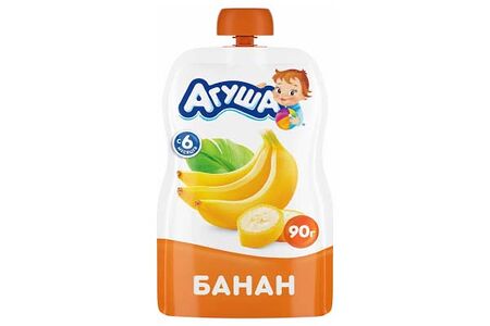 Детское питание Пюре Агуша 90гр Фруктовое Банан с 6мес дой-пак доставка
