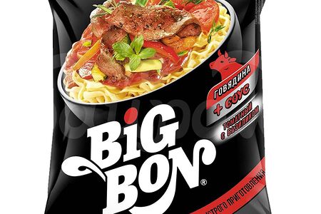 Лапша б/п Big Bon 75гр Говядина Соус томатный с базиликом пакет доставка