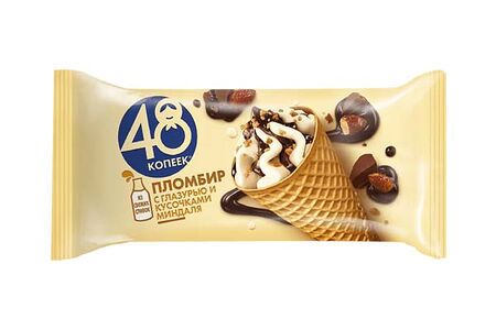 Мороженое 48 Копеек 106гр Пломбир с Глазурью Кусочками миндаля рожок доставка