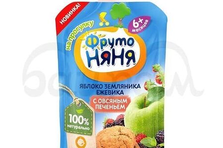 Детское питание Пюре Фруто Няня 90гр Яблоко Земляника Печенье доставка
