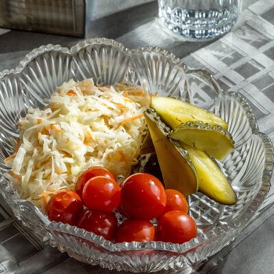Капуста квашеная, огурцы маринованные, помидоры маринованные