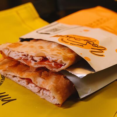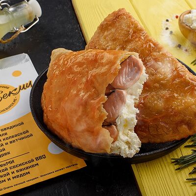 Чебурек с охотничьими колбасками доставка
